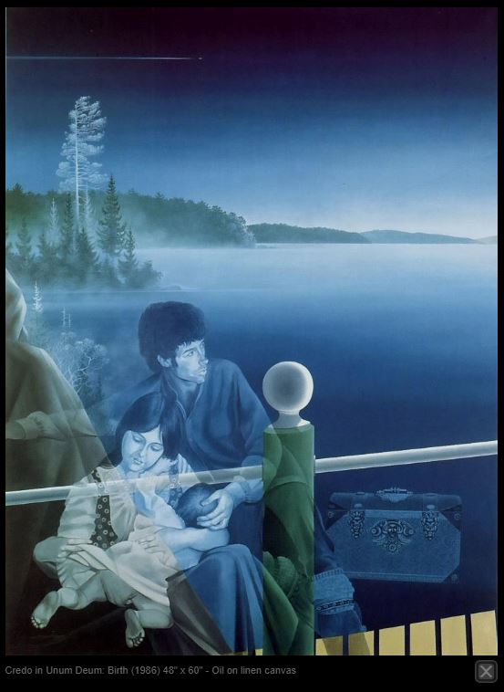 PERSONAL QUEST: Credo in Umun Denum Birth (1986) - 48" X 60" - Oil on linen canvas